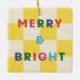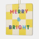 Created to coordinate with the "Checkerboard Merry & Bright" holiday card collection, this whimsical Christmas ornament features the phrase "Merry & Bright" in bold, colorful lettering, placed over a modern, yellow checkerboard pattern. The back of the ornament has space for a customer photo.