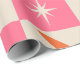 Add atomic era vibes to your gift wrap with this wrapping paper sheets featuring checkered mid century boomerangs pattern with atomic starbursts in pink and orange. It's elegant gift wrap for retro themed parties and celebrations for mid mod fans