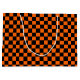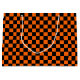 Abstract digital art of orange and black squares in a checkered formation.With the ability to change the white squares by changing the background color to match the black squares.