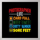 Fotograf Life Checkliste - Karte voll, Akkuausgang, Dirty Sensor und Entstörung Fülle. Farbenfrohe Ikone Kunstgestaltung, um den Accessoires und der Ausrüstung eines Fotografen hinzuzufügen. > Eine lustige Idee für einen angehenden Fotografen, Amateur oder beruflichen Instruktor. > Anpassbar: Fügen Sie Ihren eigenen individuelle Name oder Text hinzu.
