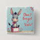 A sweet, smiling cartoon donkey sits proudly atop a ballot box, reminding viewers not to forget to vote. Surrounded by soft florals, festive bunting, and subtle patriotic details, this illustration blends charm and civic spirit in a friendly, non-intimidating way. The pastel color palette and whimsical style make this election-season vote reminder particularly appealing. It encourages participation with warmth and positivity rather than pressure, making it a lighthearted way to remind people to vote.