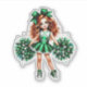 Dieser Sonderschnitt-Aufkleber wird hier mit einem niedlichen Cheerleader Girl bedruckt. Passen Sie dieses Objekt an oder kaufen Sie, wie es ist. Lizenziertes Bild