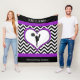 Personalisierte Beifall- oder pom Fleecedecke mit Zickzack Streifen, eine Cheerleader/pom Mädchen innerhalb eines lila Herzens und kundenspezifischer Text.