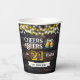 Raise a toast in style with these rustic Cheers & Beers birthday party paper cups! Featuring a dark wood background, glowing string lights, and two frosty beer mugs clinking together, this design sets the perfect tone for a fun brewery-inspired celebration. The bold yellow age number and customizable name banner make it easy to personalize for any milestone — from 21 to 99! Perfect for serving cold drinks, beer, soda, or cocktails, these durable paper cups bring your party theme together and add a festive touch to the celebration table.