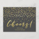 NewParkLane - Glamourous Postcard, mit 'Cheers' in eleganter Pinsel-/ Schriftzeichen-Typografie in Imitaten Gold, mit goldenen Konfetti vor dunkelgrauem Hintergrund. Spaß und elegantes Design für Geburtstage, Hochzeiten und andere Feiern. Mit einer Textvorlage für Ihre Namen(s). Einfache Anpassung in Zazzle mit eigenem Text für ein personalisiertes Design. Textstile und Hintergrundfarbe können an Ihre Bedürfnisse angepasst werden. Karo diese Auflistung für passende Elemente aus. Haben Sie spezielle persönliche Designwünsche? Kontaktieren Sie mich bitte!