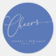 Cheers Minimalistisch Blue Script Custom Wedding Classic Round Sticker