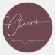 Cheers Minimalistisches Burgundy Script Custom Wedding Classic Round Sticker