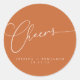 Cheers Minimalistisch Burnt Orange Script Custom Wedding Classic Round Sticker
