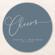 Cheers Minimal Dark Blue Script Custom Wedding Runder Pappuntersetzer