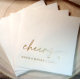 Modern and fun, these elegant “cheers” wedding napkins feature playful handwritten script with a small heart detail for a charming touch. Personalized with the bride and groom’s names and wedding date, the simple gold design blends modern typography with classic elegance—perfect for wedding receptions, cocktail hours, or engagement celebrations.