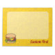 Darstellung des Cartoon von Cheeseburger. Junk Food Kontur Icons Gelbe Muster Hintergrund. Eigener Text.