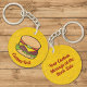 Darstellung des Cartoon von Cheeseburger. Nahtlos gelber Fastfood-Hintergrund. Benutzerdefinierter Text auf beiden Seiten.