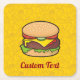 Darstellung des Cartoon von Cheeseburger. Junk Food Kontur Icons Gelbe Muster Hintergrund. Eigener Text.