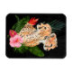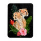 Cheetah Bouquet II von Annie Warren. Zwei Geparden sind von tropischen Blätter und Pflanzen gerahmt, die auf schwarzem Hintergrund gehalten sind. | 164453Z