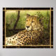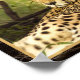 Eine Geparden, die sich gemütlich im Dschungel verlegen. Wildcat entspannt sich im Dschungel. Großes Katzenfoto mit schwarzem und (Imitate) goldgelbem Hintergrund mit goldenen Rändern. Leopard, Cheetah, Jaguar liebt Fotografie. Jedes Element kann verschoben, verändert oder gelöscht werden.
