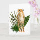 Cheetah Outlook I von Annie Warren. Ein Gepard im Aquarellstil mit tropisch grünen Blätter im Hintergrund. | 164730Z