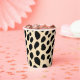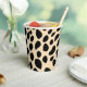Dieses Design zeichnet sich durch ein leopardenes Druckmuster auf einem hellorangen Hintergrund aus. Das Muster besteht aus schwarzen Flecken, die in Größe und Form variieren und einen Kontrast zur orangefarbenen Farbe bilden. Dieses Design ist perfekt für jeden, der Tierabdrücke Liebe und will,