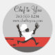 Chef courir avec des fourchettes et des couteaux "de ma cuisine", "de la cuisine de" étiquettes-cadeaux autocollants ou étiquettes de colis pour la livraison de repas, traiteur ou traiteur, et des chefs personnels. Chef en silhouette avec casquette blanc poofy, veste, courant sur un groupe rouge avec arrière - plan gris.