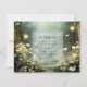 Chemin forestier éthérée de fleurs et d'arbres sont présentés dans cette magique enchantée sauge vert mariage rsvp, avec des lumières brillantes.