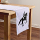 Coureur de table avec l'illustration noir et blanc d'un coureur de dressage en tenue formelle. Le cheval et le cavalier exécutent une belle pirouette. Un élégant mouvement de dressage classique.