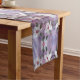 Elégant coureur de table aux fleurs blanches et accentué de violet, bleu et une touche de rouge grange. accent moderne pour votre maison, chalet ou spa.