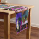 A refined botanical short table runner featuring an elegant vine‑and‑leaf motif rendered in a modern, curated palette of dark rose, magenta, pink, layered blues, and soft shades of green, grounded by earthy brown, black, and gray tones. The artwork blends contemporary charm with sophisticated design, creating a warm, expressive presence that enhances modern, eclectic, bohemian, and globally inspired interiors.