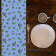 Un chemin de table avec un motif de myrtilles sauvages ou brimbelles pour la décoration de la cuisine. Idéal si vous recevez des amis à dîner !