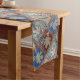 Ce Tableau Runner a une impression de tuiles de feuilles d'érable. Ses couleurs sont le vert, le marron, le bleu et le blanc. C'est un accent parfait pour votre Bungalow Artiste, Cabine, Lodge ou maison de vacances. Cette impression provient de la tuile artisanale de l'artisan de l'Oregon Tile maker Fay Jones Day.