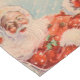 Voici le Père Noël à travers la neige et le blizzard le soir de Noël sur un coureur de table de vacances.