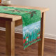 Train de Noël sur la Table verte Runner avec le petit chien écossais à cheval le long.