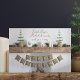 Une scène intérieure d'inspiration scandinave avec cheminée rustique avec bougies, cônes de pin, billes, lanterne et petits sapins avec espace pour vous ajouter un accueil et votre adresse au verso