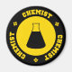 Chemist - schwarz-gelber Wissenschaftsmagnet mit kollegialer Schrift und Erlenmeyer-Flasche.