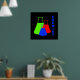 Chemist - schwarzes Poster mit blauer Schrift und rot, grün und blau Erlenmeyer Flaschen.