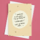 Leichte Karte für jemanden, der Chemotherapie-Behandlungen durchmacht. Die Formulierung auf der Vorderseite der Karte lautet: "Ich verspreche, niemandem zu sagen, dass du schon "Chemogehirn" gehabt hast, bevor du mit Chemotherapie angefangen hast..." Handgeschriebene Typografie mit kleinen schwarzen Herzen vor einem milden gelben Hintergrund.