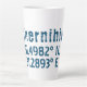 Die neueste Tasse bietet Breiten- und Längenkoordinaten für Tschernihiv, Ukraine in einem dunkelblauen Schriftart. Chernihiv liegt in der Nord-Ukraine und wurde als "Stadt der Legenden" bezeichnet.