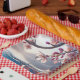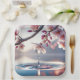 Kirschblüten hängen delikat über einem Gewässer, wo ein Single Tropfen Wellen schafft, die die ruhige Schönheit der Natur erfassen