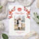 Hübsche rote Kirschblüten und ein doppeltes Glückszeichen auf weißem Hintergrund. Mit einer maßgeschneiderten Hochzeit Dankeschön Text, Ihr Foto und Ihre Namen und Hochzeitsdatum.