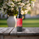 Genießen Sie Ihre Hochzeitsgetränke mit diesem Wein zum Thema Kirschblüten. Mit einem markanten roten Hintergrund mit weißen Kirschblüten und einem schwarzen Ast. Ideal, um einen modernen und naturlich inspirierten Flair zu Ihrer Hochzeit hinzuzufügen.