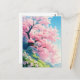 Cherry Blossom Tree on Sunny Green Hillside Postkarte