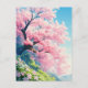 This breathtaking design features a massive, ancient cherry blossom tree that stands as a vibrant landmark on a sun-drenched hillside. Rendered in a lush, textured watercolor style, the tree is heavy with dense clusters of soft pink blossoms that create a cloud-like effect against the clear, bright blue sky. Below the tree, the rolling green hill is covered in a carpet of fresh grass and delicate white and pink wildflowers that seem to glow in the afternoon light. In the distance, soft blue mountain peaks rise through a hazy mist, adding a sense of height and tranquility to the expansive landscape. The overall aesthetic is bright, optimistic, and full of natural grace, making it an exceptional choice for anyone who admires Japanese floral landscapes and the peak of spring's beauty. This elegant cherry blossom postcard is a perfect choice for sending a "thinking of you" sunshine note or a meaningful greeting to a friend who loves the peaceful beauty of nature. You might choose to use this artistic card for a spring-themed garden party invitation or to celebrate a professional milestone with a touch of natural elegance for your colleagues. It also makes a beautiful decorative piece for an office desk or a stylish addition to a gallery wall as a small token of spring's arrival. This versatile design is also an excellent choice for a housewarming message, a wedding thank you note, or as a heartwarming way to share a message of joy for any situation or event.