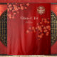 Diese chinesische Hochzeit-/Teezeremonie mit roten Kirschblüten und einem goldenen doppelten Glückssymbol auf rotem Hintergrund. Braut und Bräutigam Namen in einem traditionellen eleganten Skript. Matching Hochzeit Anzug zur Verfügung. .