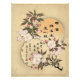 Kirsche blüht gegen Sonne oder Mond. Vintager japanischer Druck.