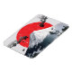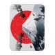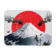 Die Geburt einer neuen Saison in Japan. Eine schöne Abbildung der Blüten und Blüten der Sakurarenkirsche, die in der Brise mit dem Fuji-Berg und der japanischen Fahne im Hintergrund der aufgehenden Sonne kaskadieren. Das moderne Design ist perfekt für ein Weihnachtsgeschenk, ein Geburtstagsgeschenk, ein Kinderzimmer oder eine Wohngestaltung.