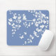 Weiße Silhouette von Kirschblüten und Schmetterlingen vor einem wunderschönen blauen Hintergrund. Das beruhigende Blau und Weiß macht das zu Ihrem Lieblingsdesign.