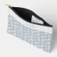 Dieser Accessoires-Beutel weist eine durchsichtige, weiße Oberkante auf, die einen personalisierten Namen über einem Blumenmuster der Weißkirsche auf blauem Hintergrund verleiht.