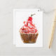 ein traditionelles Aquarellwerk eines leckeren Kuchens mit cremiger Spitze und einer Kirsche auf einer Postkarte.