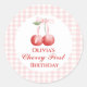 Cherry erster Geburtstag Pink Bow Gingham Runder Aufkleber