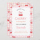 Notre petite cerise douce en devient une ! 🍒 Fêtez le grand jalon de votre petit avec cette adorable invitation de premier anniversaire sur le thème du cerisier ! Doté d'une charmante bordure en vichy, d'illustrations de cerise douce aux arcs roses et de tons pastel doux, cet invitation donne le ton d'une célébration joyeuse et mignonne. Parfait pour les anniversaires d'été, les fêtes de jardin ou tout autre thème fruité-amusant ! Envoyez l’invitation le plus sucré et faites-le savoir à vos invités — ce sera une journée spéciale baie! 🍒 💖