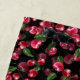 Rote Kirschfrucht mit grünen Blätter auf schwarz