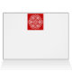 Dieses weiße Mandala sitzt auf einem hellen roten Hintergrund. Die Farbe ist energiegeladen und warm. Teil der Rosenn Mandala Kollektion.